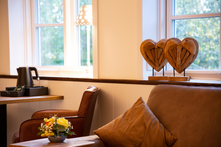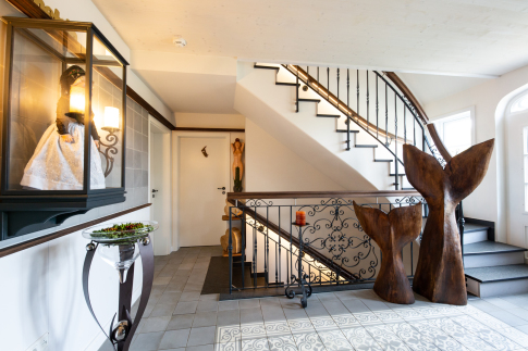 Ein weiterer Pluspunkt: Über einen kurzen Treppenabgang gelangen Gäste in den Garten, wo mehrere Terrassenbereiche zur Verfügung stehen und individuelle Rückzugsorte im Freien bieten. Das Klassik-Doppelzimmer verbindet Komfort, Gemütlichkeit und Großzügigkeit zu einem rundum angenehmen Wohnerlebnis.